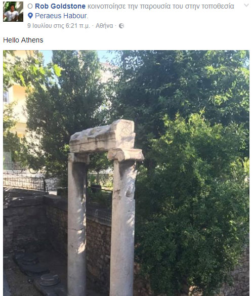 Τετάρτη 12 Ιουλίου 2017. Αθήνα. Τα τηλέφωνα έσπασαν από το πρωί με αγχώδεις αγγλοσάξονες δημοσιογράφους να ρωτούν με αγωνία εάν κάποιος έχει αντιληφθεί κάτι για κάποιον Rob Goldstone ο οποίος βρίσκεται στην Ελλάδα.