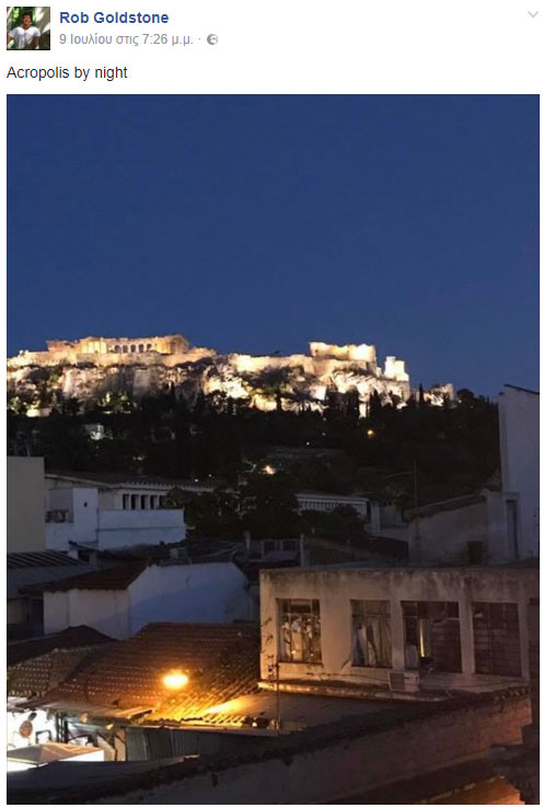 Το βράδυ της 9ης Ιουλίου, ο Goldstone αναρτά φωτογραφία της φωτισμένης Ακρόπολης. Όπως φαίνεται επισκέφτηκε και το Λουτρό των Αέρηδων, ένα μουσείο και ένα μοναστήρι στο κέντρο της Αθήνας.