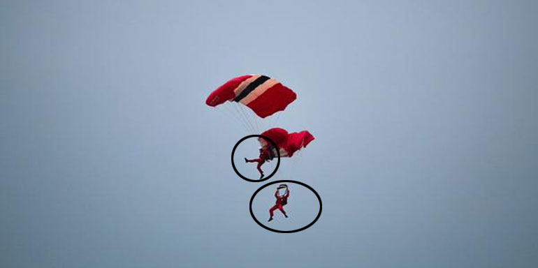 Απίστευτες καταστάσεις είδαν να εκτυλίσσονται μπροστά στα μάτια τους το απόγευμα της Παρασκευής οι θεατές που παρακολούθησαν αεροπορική επίδειξη της γνωστής ομάδας αλεξιπτωτιστών «Red Devils» στη Βρετανία.