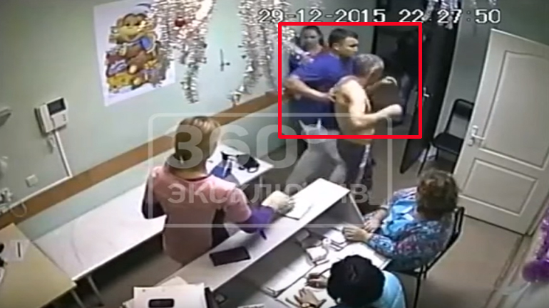 Ο 56χρονος νωρίτερα είχε κλωτσήσει μια νοσοκόμα. Η ενέργειά του αυτή φαίνεται ότι πυροδότησε την οργή του γιατρού Ίλια Ζελεντίνοφ, ο οποίος μπαίνοντας στον χώρο σπρώχνει τον 56χρονο μέσα στην αίθουσα εξέτασης.