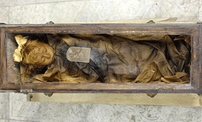 Τους «νοσηρούς» ισχυρισμούς ότι η μούμια ενός μικρού κοριτσιού στη Σικελία ανοιγοκλείνει μάτια της κάθε μέρα, προσπαθούν να καταρρίψουν Ιταλοί αρχαιολόγοι. To ιδιαίτερα… ανατριχιαστικό φαινόμενο έχει καταγραφεί πολλές φορές σε βίντεο και έχει αποτελέσει αντικείμενο για διάφορες μεταφυσικές εικασίες.