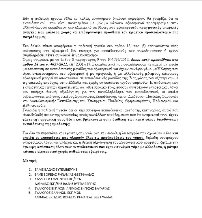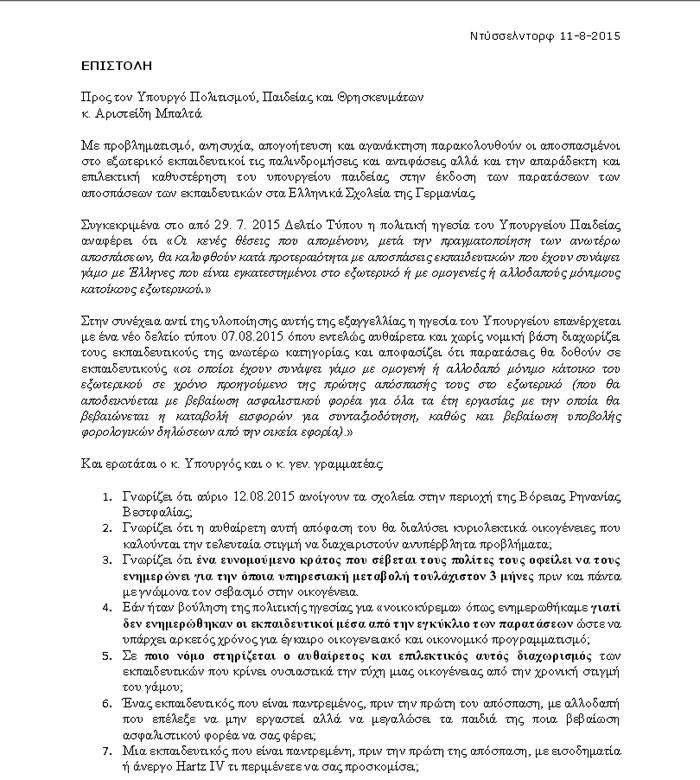 SOS από τους Έλληνες εκπαιδευτικούς της Γερμανίας για το ζήτημα των αποσπάσεων