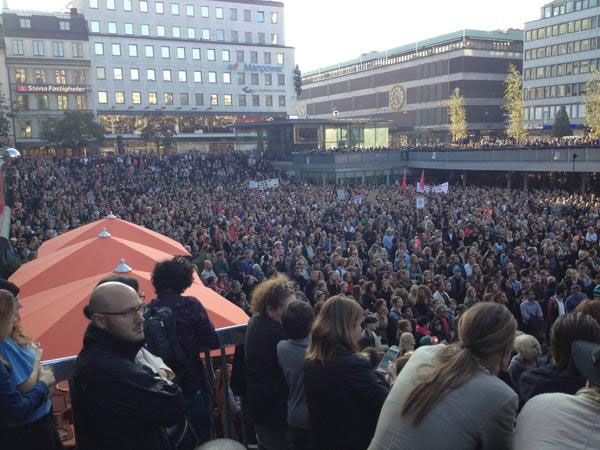 Στον απόηχο των εκλογών της Κυριακής, όπου το ακροδεξιό κόμμα της Σουηδίας συγκέντρωσε 49 έδρες (σημαντική αύξηση από τις 20 έδρες που είχε λάβει στις εκλογές του 2010), ο κόσμος οργανώθηκε άμεσα και θέλησε να εκφράσει τον αποτροπιασμό του για τις επιλογές ενός σημαντικού κομματιού των Σουηδών, που διάλεξαν ένα ναζιστικό κόμμα για το κοινοβούλιο της χώρας.