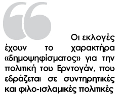 Μια πιθανή εκλογή του Ερντογάν, μπορεί να αποτελέσει την απαρχή σημαντικών μεταρρυθμίσεων – ίσως όχι όμως έτσι όπως τις φαντάζονται οι πιο προοδευτικές φωνές της χώρας, μιας και ο ίδιος θα αποκτήσει την απαραίτητη λαϊκή νομιμοποίηση για να επιβάλλει ότι… χρειαστεί.