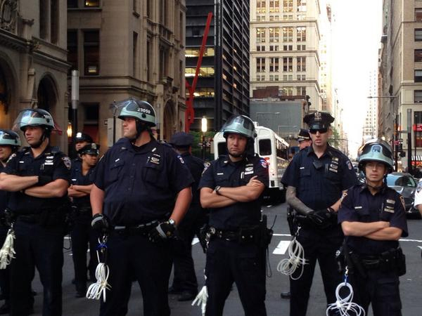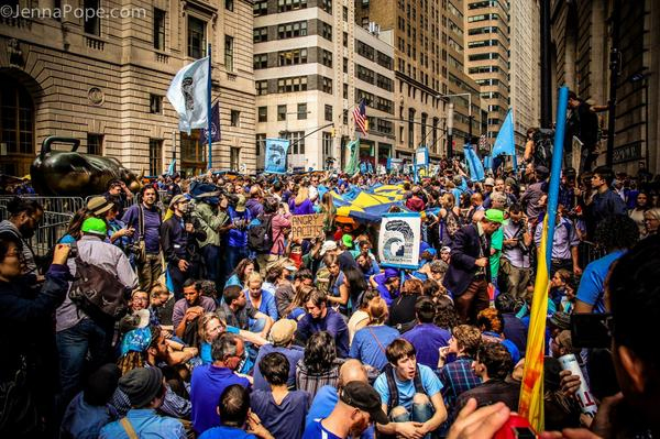 Οι διαδηλωτές δεν είχαν την απαραίτητη άδεια και κλήθηκαν να διαλυθούν, όταν επιχείρησαν να περάσουν ανάμεσα από τα προστατευτικά κιγκλιδώματα, που είχαν στήσει οι αστυνομικοί γύρω από τον ταύρο (το σήμα κατατεθέν της Wall Street), και στη συνέχεια να εισέλθουν στο κτήριο, όπου γίνονται οι συναλλαγές. Προκλήθηκε ένταση. Μέλη των δυνάμεων ασφαλείας χρησιμοποίησαν σπρέι και κλομπ για να απωθήσουν το συγκεντρωμένο πλήθος. Συνολικά 102 άνθρωποι οδηγήθηκαν στο κρατητήριο για αντίσταση κατά της αρχής και ανυπακοή.