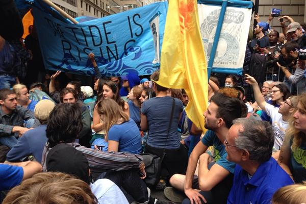 Μόλις μια ημέρα μετά τη μεγαλύτερη πορεία διαμαρτυρίας για την κλιματική αλλαγή στο Μανχάταν της Νέας Υόρκης (με τη συμμετοχή περισσότερων από 300.000 ανθρώπων) εκατοντάδες ακτιβιστές έκαναν το μεσημέρι της Δευτέρας την εμφάνισή τους στο κέντρο του «Μεγάλου Μήλου», καλώντας τους ηγέτες να λάβουν περισσότερα μέτρα για την προστασία του περιβάλλοντος.