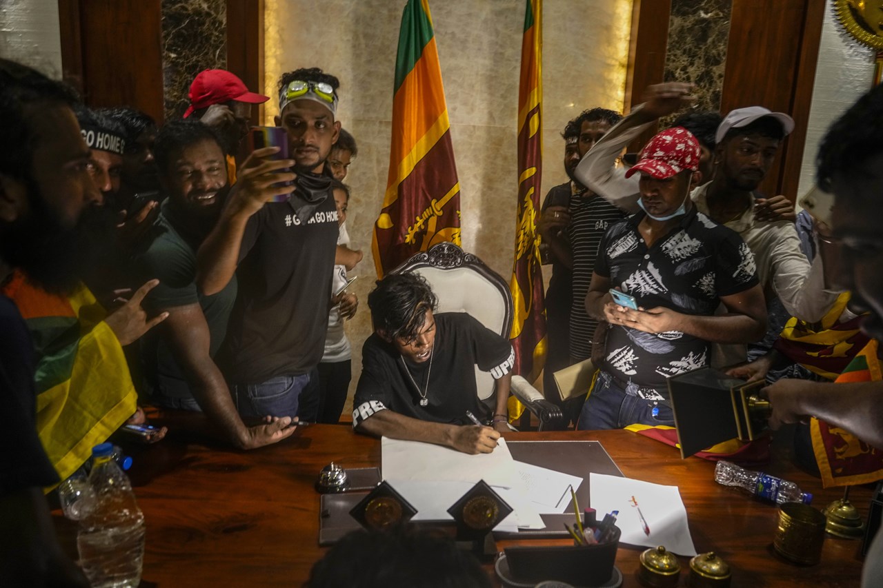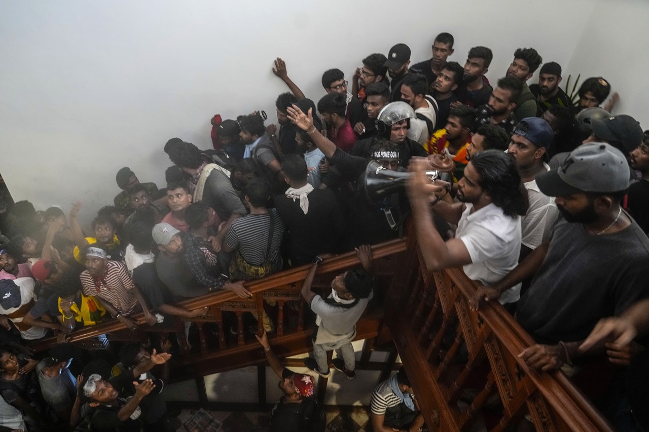 Το πλήθος που διαδηλώνει εισέβαλε στα γραφεία του πρωθυπουργού Ρανίλ Βικρεμεσίνγκε την Τετάρτη, αφού έκανε το ίδιο το Σάββατο με το προεδρικό μέγαρο του Ρατζαπάξα, αναγκάζοντάς τον να διαφύγει στο εξωτερικό.