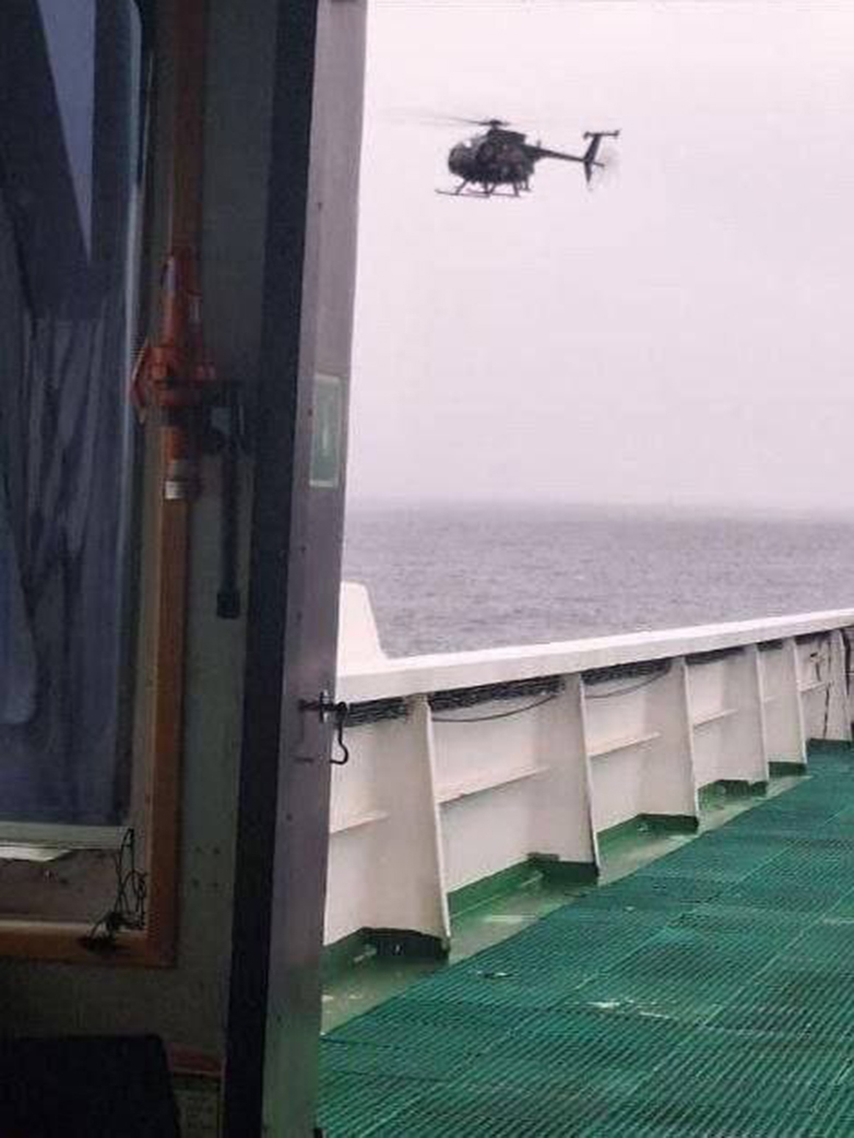 Φωτογραφία με το αμερικανικό ελικόπτερο, τραβηγμένη από μέλος του πληρώματος του τάνκερ Marinera