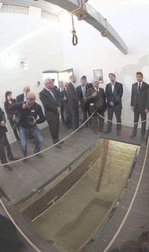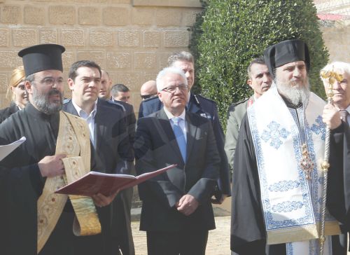 Ο Αλέξης Τσίπρας ξεναγήθηκε στον χώρο όπου τελέστηκε τρισάγιο και στη συνέχεια κατέθεσε στεφάνι.