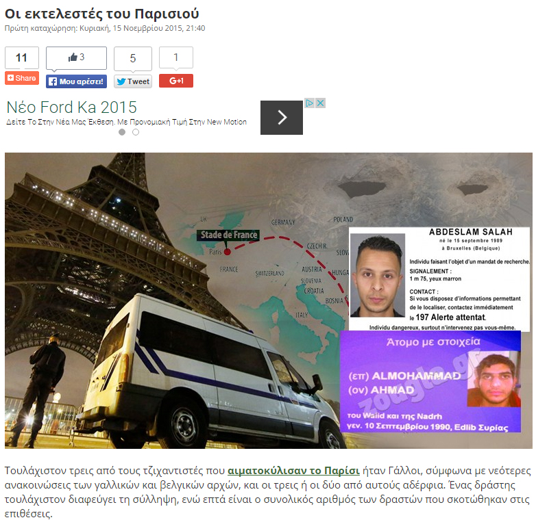 Υπενθυμίζεται ότι ακόμη τρεις δράστες είχαν ταυτοποιηθεί νωρίτερα από τις γαλλικές Αρχές. Πρόκειται για τους Ομάρ Ισμαήλ Μουσταφάι, Ιμπραήμ Αμπντεσλάμ και Μπιλάλ Χαντφί.