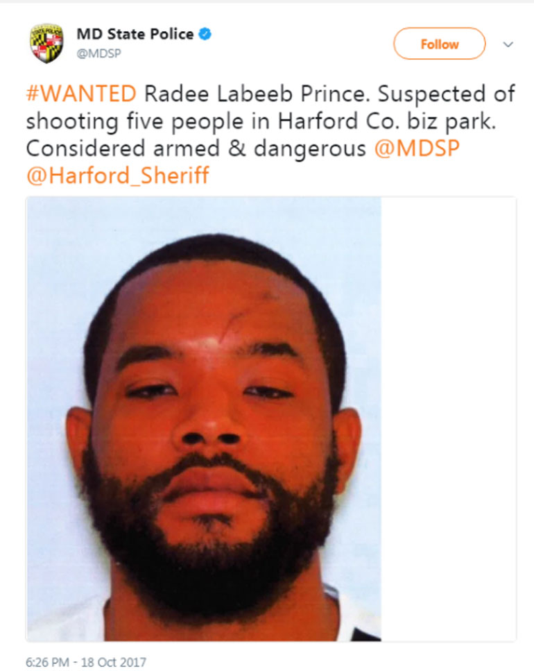 Στη δημοσιότητα δόθηκε από τις αρχές το όνομα και η φωτογραφία του υπόπτου που αναζητείται καθώς πυροβόλισε στο Μέριλαντ και τραυμάτισε πέντε άτομα.