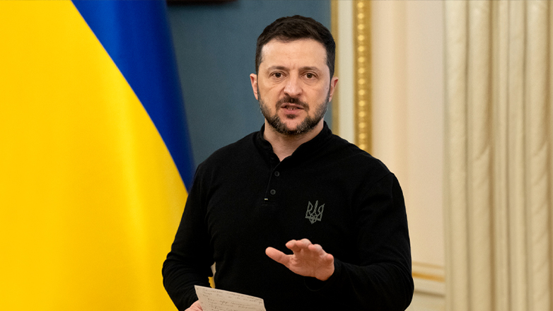 Ο Πρόεδρος της Ουκρανίας συνοδεύεται από τη σύζυγό του Ολένα Ζελένσκα και από τον Υπουργό Εξωτερικών της χώρας Άντριι Σιμπίχα.