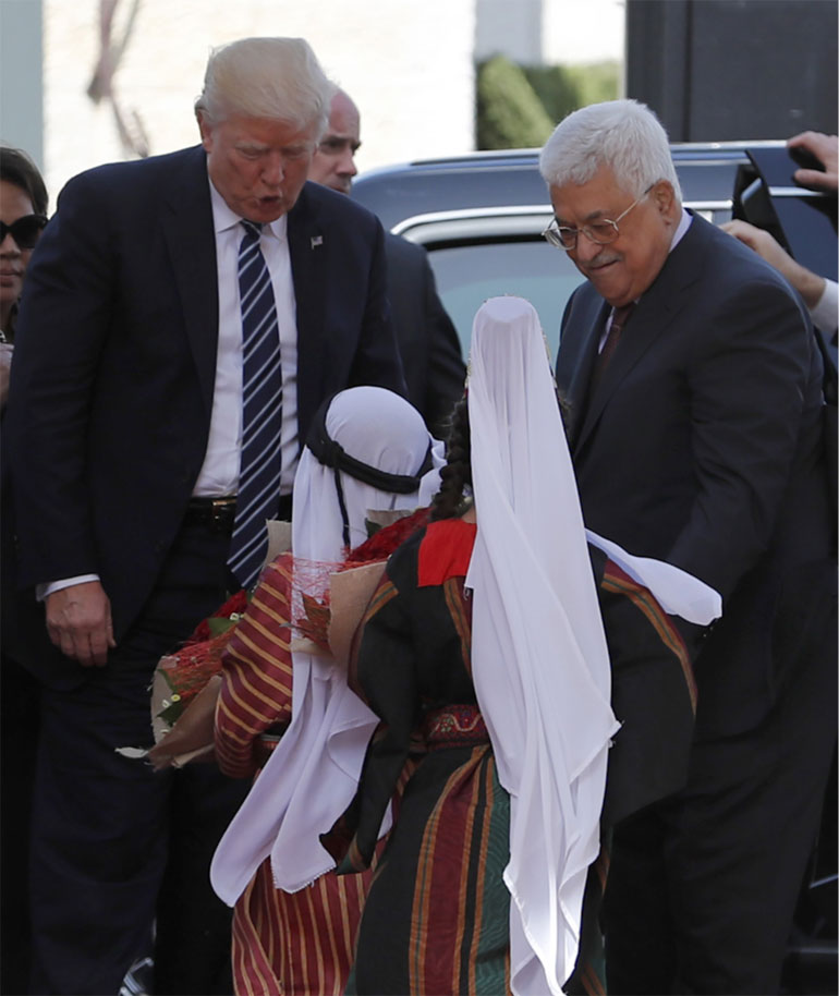 Ο Τραμπ, ο οποίος ενημερώθηκε για κάποιες πτυχές του Μεσανατολικού στην Ιερουσαλήμ στη διάρκεια συνομιλιών του με Ισραηλινούς αξιωματούχους, αναμένεται να ακούσει σήμερα και την άλλη πλευρά στη Βηθλεέμ από τον Αμπάς, που επιθυμεί να παρουσιάσει το όνειρο των Παλαιστινίων για ανεξάρτητο κράτος σε έναν Αμερικανό πρόεδρο που ακόμη δεν έχει ξεκαθαρίσει τα σχέδιά του για την περιοχή.