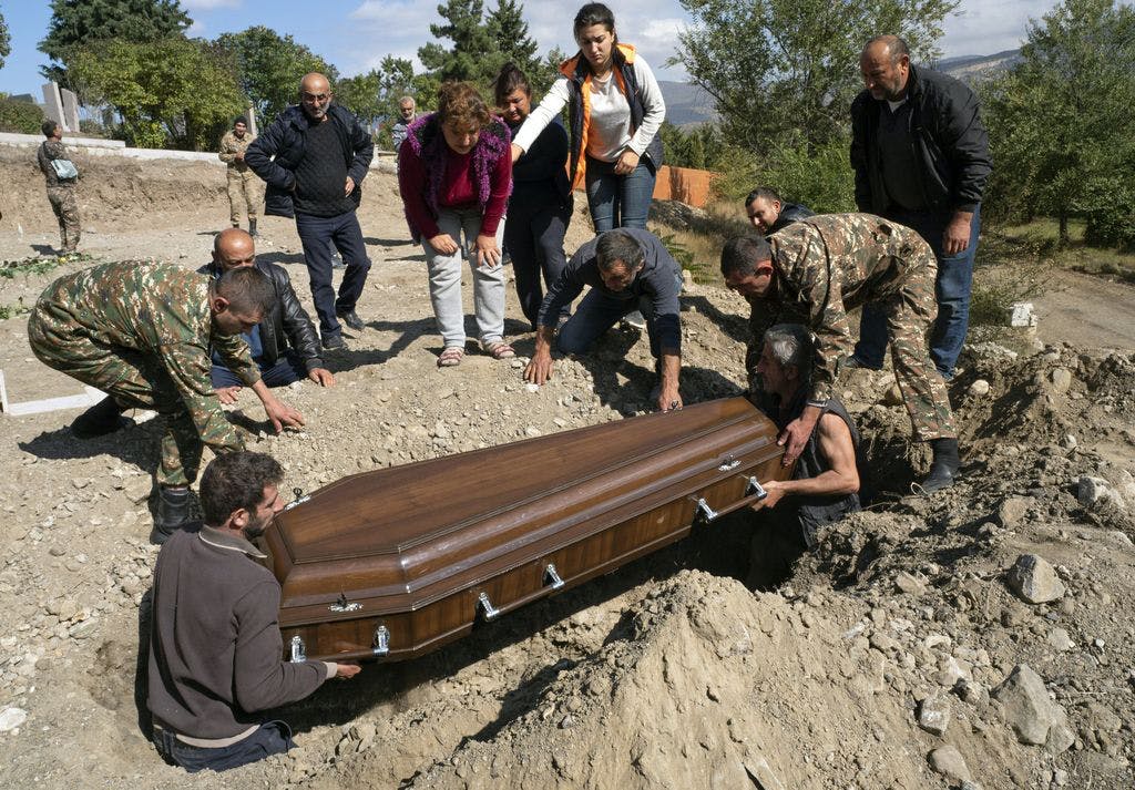 Μια ειρηνευτική διαδικασία δεκαετιών κατέρρευσε τον Σεπτέμβριο, καθώς το Αζερμπαϊτζάν, υποστηριζόμενο από την Τουρκία, πήρε πίσω περιοχές που έχασε σε μια ταπεινωτική ήττα από την Αρμενία στον πόλεμο του 1988-94. Η τελική συμφωνία της 10ης Νοεμβρίου εξασφάλισε τα στρατιωτικά κέρδη του Αζερμπαϊτζάν, συμπεριλαμβανομένου του 40% περίπου του Ναγκόρνο-Καραμπάχ και αρκετών περιοχών δίπλα στον θύλακα, και προβλέπει την συμφωνία της Αρμενίας να αποχωρήσει και από άλλες γειτονικές περιοχές. Την Παρασκευή, ο πρόεδρος του Αζερμπαϊτζάν, Ilham Aliyev, δήλωσε ότι οι δυνάμεις της χώρας του έχουν αναλάβει τον έλεγχο βασικών τμημάτων του πρώην αρμενικού εδάφους.