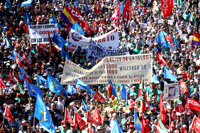 Για άλλη μια φορά στους δρόμους ξεχύθηκαν χιλιάδες Ισπανοί για να διατρανώσουν τη διαμαρτυρία τους για τις πολιτικές που τους οδήγησαν στην ανεργία και στην εξαθλίωση, με την ευκαιρία των δύο ετών από την έναρξη του κινήματος των αγανακτισμένων.