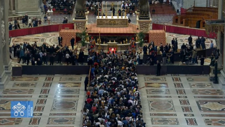 Λίγο μετά τις 10:30 το πρωί έγινε η μεταφορά για το σκήνωμα του Πάπα στη Βασιλική του Αγίου Πέτρου, όπου τίθεται απο σήμερα σε λαϊκό προσκύνημα για τους χιλιάδες πιστούς που προσέρχονται στο Βατικανό για να αποχαιρετήσουν τον αγαπητό τους «Ποντίφικα των φτωχών».