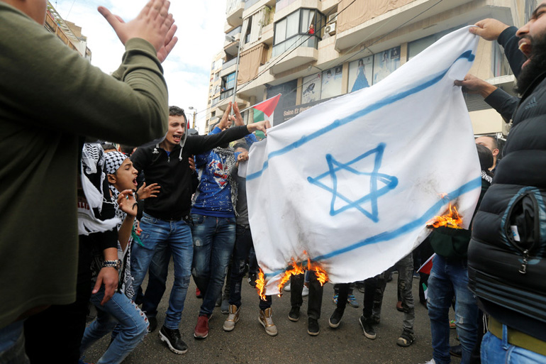 Στον Λίβανο, χιλιάδες μέλη ισλαμικών και αριστερών κομμάτων αλλά και πολλοί Παλαιστίνιοι οργάνωσαν μια πορεία στη Βηρυτό. Ορισμένοι κρατούσαν φωτογραφίες του Τραμπ και αμερικανικές σημαίες, τις οποίες είχαν διαγράψει με ένα μεγάλο, κόκκινο Χ. Διαδηλώσεις έγιναν επίσης σε τρεις από τους 12 παλαιστινιακούς καταυλισμούς του Λιβάνου.