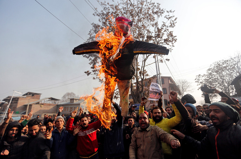 Κάποιοι από τους διαδηλωτές έκαψαν φωτογραφίες του Τραμπ και του Ισραηλινού πρωθυπουργού Μπενιαμίν Νετανιάχου φωνάζοντας «Θάνατος στον Διάβολο».