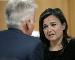 Στις πρώτες της δηλώσεις προσπάθησε να αποφορτίσει κάπως το κλίμα, λέγοντας αστειευόμενη ότι έλεγε συνεχώς στον εαυτό της ότι ήταν προτιμότερο να μιλήσει στα Αγγλικά παρά στα Ιταλικά.