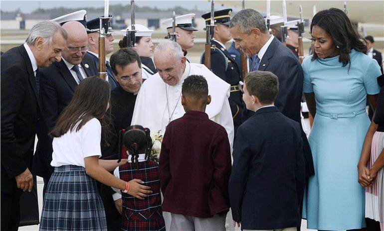 Σε αμερικανικό έδαφος βρίσκεται ο Πάπας Φραγκίσκος. Μετά το ταξίδι στην Κούβα και την αποθεωτική υποδοχή που του επιφύλαξαν εκεί οι κάτοικοι της νησιωτικής χώρας, ο Ποντίφικας έφθασε αργά το βράδυ της Τρίτης (ώρα Ελλάδας) στις ΗΠΑ, προκειμένου να μεταφέρει το μήνυμα ότι «η δύναμη και ο πλούτος θα πρέπει να αξιοποιούνται για το καλό της Ανθρωπότητας».