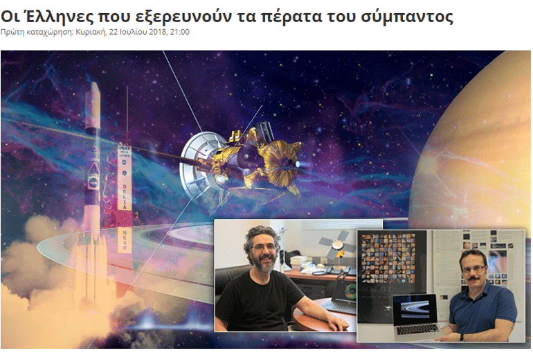 Οι ερευνητές από τις ΗΠΑ, την Ελλάδα, την Ελβετία και την Αργεντινή, έκαναν πέντε σχετικές δημοσιεύσεις στο περιοδικό αστρονομίας “Nature Astronomy”. Επικεφαλής της μίας από τις πέντε μελέτες του Voyager 2 είναι ο ακαδημαϊκός καθηγητής Σταμάτης Κριμιζής, επικεφαλής του Γραφείου Διαστημικής Έρευνας και Τεχνολογίας της Ακαδημίας Αθηνών και εδώ και πολλά χρόνια συνεργάτης του Εργαστηρίου Εφαρμοσμένης Φυσικής του Πανεπιστημίου Τζονς Χόπκινς των ΗΠΑ, ενώ συμμετέχει και ο Κωνσταντίνος Διαλυνάς, μεταδιδακτορικός ερευνητής στο ίδιο Γραφείο.