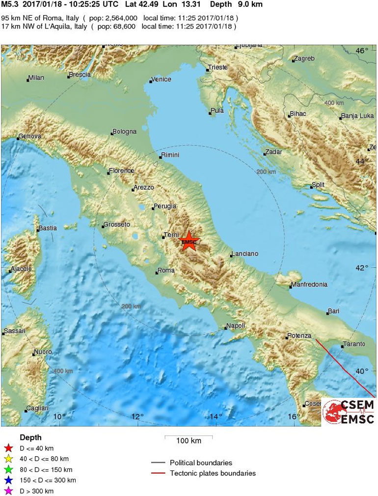 Οι σεισμοί έγιναν αισθητοί σε Ρώμη, Μάρκε και Αμπρούτσο.
