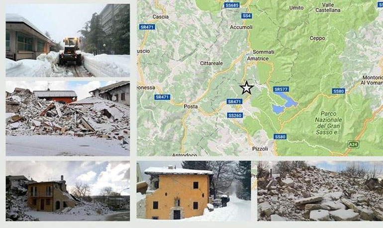 Τις τελευταίες ημέρες οι σεισμόπληκτες περιοχές των περιφερειών Ούμπρια, Μάρκε και Λάτσιο δοκιμάζονται από τη σφοδρή κακοκαιρία και τις χιονοπτώσεις, ενώ πολλά μικρά χωριά έχουν αποκλεισθεί. Η κακοκαιρία έχει προκαλέσει πλημμύρες στην Πεσκάρα, ενώ στο Αμπρούτσο περίπου 300.000 νοικοκυριά είχαν μείνει το προηγούμενο 24ωρο χωρίς ρεύμα.