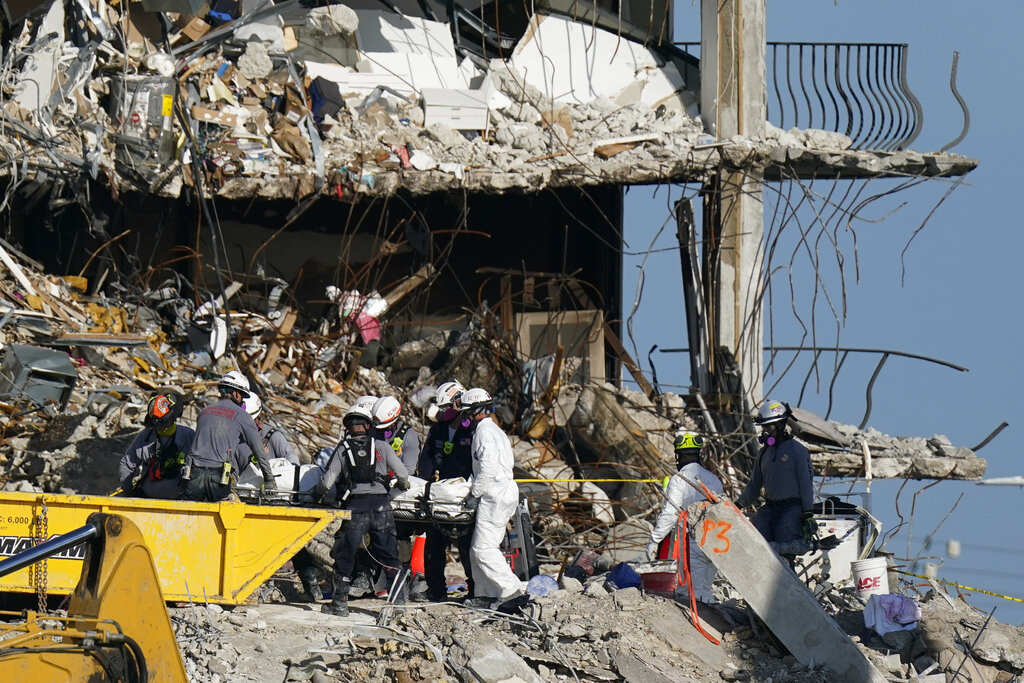 Κανένας άνθρωπος δεν έχει ανασυρθεί ζωντανός από τα συντρίμμια, από τις πρώτες ώρες που το δωδεκαώροφο συγκρότημα κατέρρευσε εν μέρει, στις 24 Ιουνίου, την ώρα που οι ένοικοί του κοιμόντουσαν.