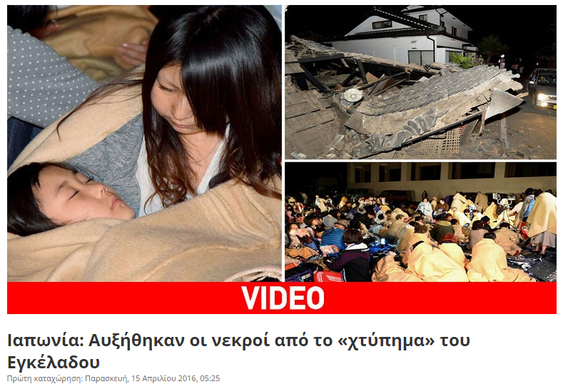 Τουλάχιστον 39 άνθρωποι σκοτώθηκαν και 1.500 τραυματίστηκαν έπειτα από τις δύο ισχυρές δονήσεις που έπληξαν την ΙαπωνίαΣε 30 έχει ανέλθει ο αριθμός των θυμάτων από τον δεύτερο, ισχυρότερο σεισμό που χτύπησε τη νότια Ιαπωνία το Σάββατο, λίγες ώρες μετά τον σεισμό που είχε ήδη στοιχίσει τη ζωή σε τουλάχιστον 10 άτομα.