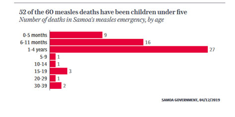 Το ποσοστό εμβολιασμού στη Σαμόα ήταν μόλις 30% πριν από το ξέσπασμα της επιδημίας και είχε φτάσει το 55% όταν ξεκίνησε η εκστρατεία πριν από δύο εβδομάδες.