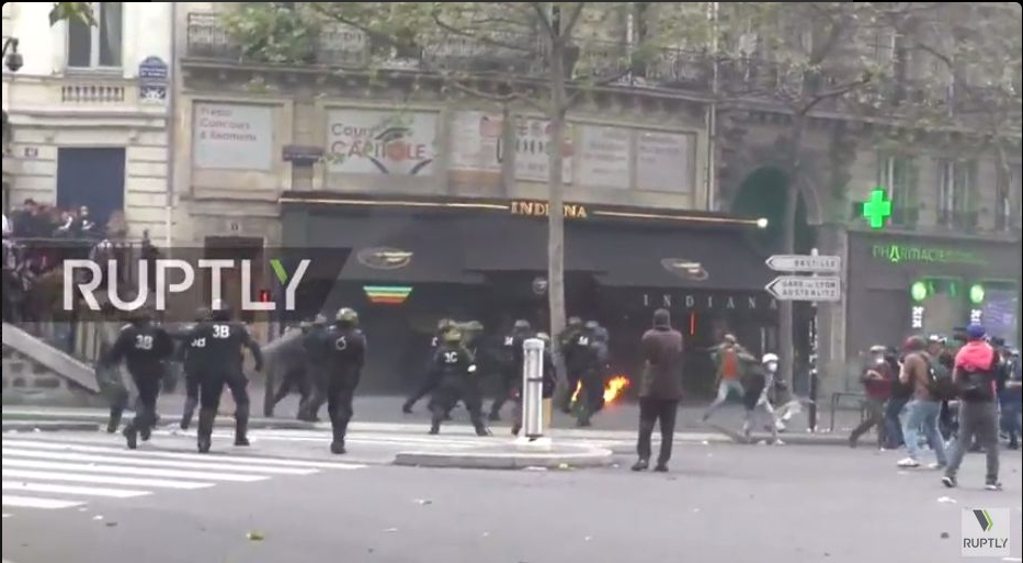 Επεισόδια ξέσπασαν κατά τη διαδήλωση του Παρισιού, καθώς οι συγκεντρωμένοι εκτόξευαν διάφορα αντικείμενα εναντίον των αστυνομικών δυνάμεων που τους απάντησαν κάνοντας χρήση δακρυγόνων και βομβίδων κρότου-λάμψης. Έξι άνθρωποι συνελήφθησαν πριν και μετά την κινητοποίηση. κατά την οποία ομάδες νέων φώναζαν συνθήματα όπως «όλοι σιχαίνονται την αστυνομία».