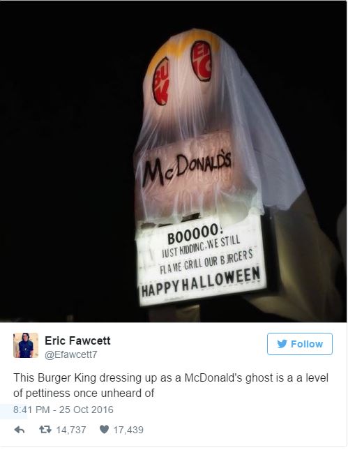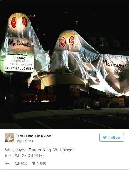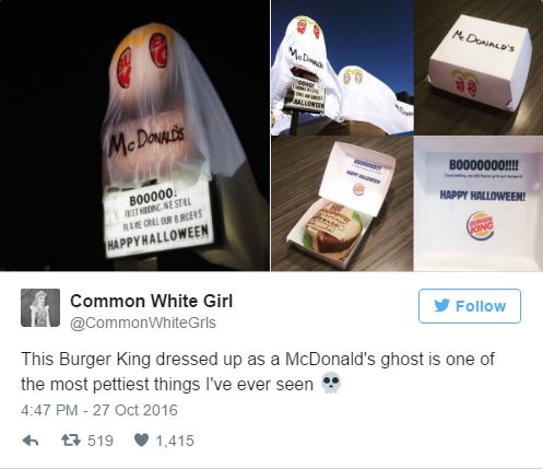 Ένα κατάστημα Burger King στο Queens της Νέας Υόρκης πήγε το θέμα της μεταμφίεσης ένα βήμα παραπέρα. Ελέω Halloween, οι υπάλληλοι “μεταμφίεσαν” το κατάστημα σε φαντασματάκι McDonald’s.
