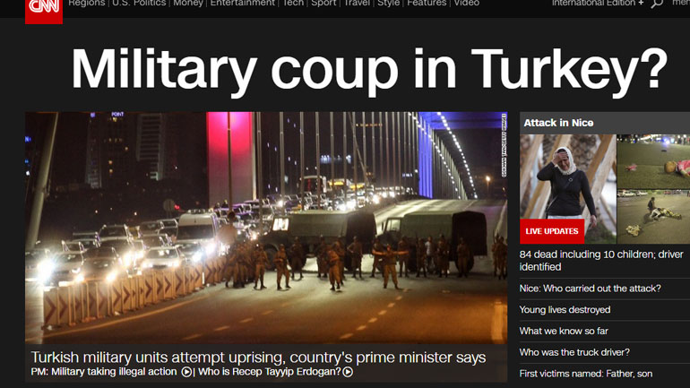 To τηλεοπτικό δίκτυο CNN τονίζει: «Προσπάθεια για πραξικόπημα στη Τουρκία»