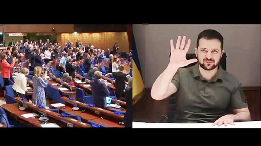 Αγνοώντας επιδεικτικά την διαφοροποίηση πολλών ευρωπαίων ηγετών, στις ευρωπαϊκές κυρώσεις που επιβλήθηκαν στην Ρωσία, λόγω του πολέμου με την Ουκρανία, ο πρόεδρος Ζελένσκι, μιλώντας μέσω βίντεο, στην Ολομέλεια της Συνέλευσης του Συμβουλίου της Ευρώπης στο Στρασβούργο, «είδε» ενέργειες που έχουν κάνει την Ευρώπη άνευ προηγουμένου ισχυρότερη!