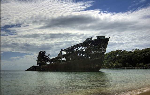 Το κουφάρι του πλοίου στη θαλάσσια περιοχή των Ίσλας ντε λα Μπαΐα της Ονδούρας