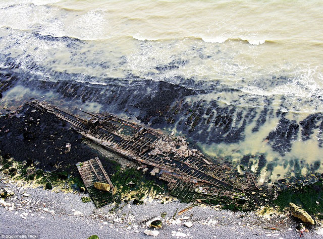 Ό,τι απέμεινε από το «SS Falcon», το οποίο ναυάγησε στο Ντόβερ της Μεγάλης Βρετανίας το 1926, όταν στο φορτίο του εκδηλώθηκε πυρκαγιά