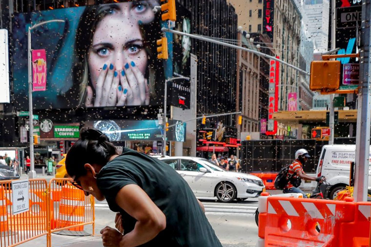 Μία από τις πλέον ανεξήγητες ιστορίες με πρωταγωνιστές ζώα εκτυλίχθηκε ένα καυτό απόγευμα του Αυγούστου, όταν ένα απειλητικό σμήνος μελισσών αποφάσισε να «εποικίσει» την ομπρέλα ενός πωλητή χοτ ντογκ, με αποτέλεσμα να «παγώσει» κάθε δραστηριότητα στην Times Square και οι τουρίστες να κοιτούν το θέαμα με ανοικτό το στόμα.