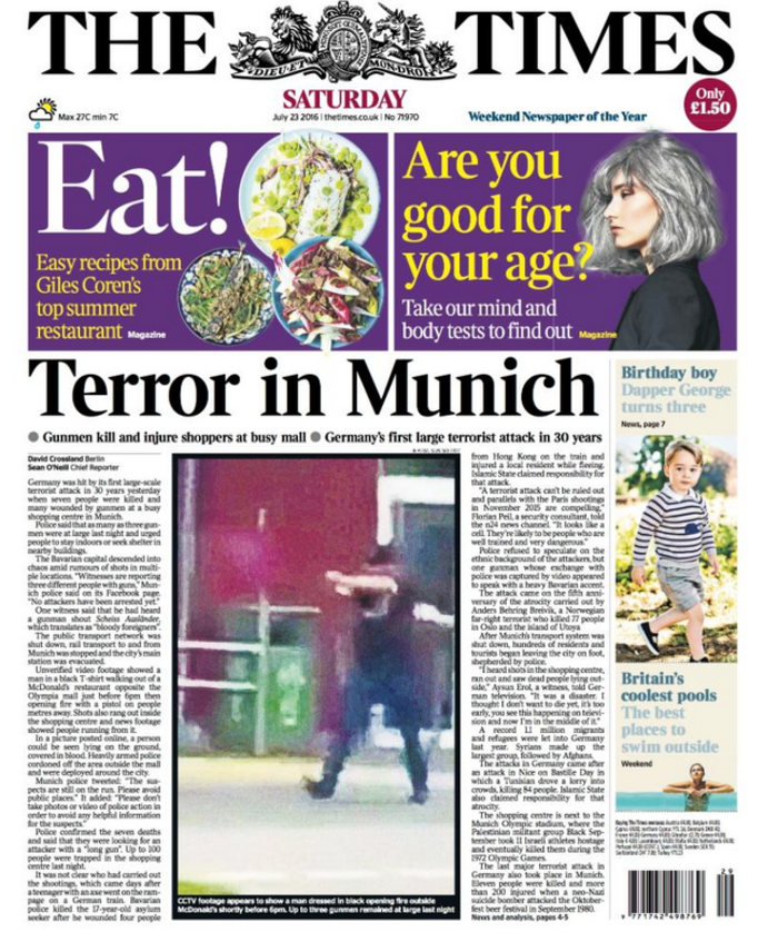 Στο μακελειό του Μονάχου αναφέρονται τα πρωτοσέλιδα των μεγαλύτερων εφημερίδων της Ευρώπης.