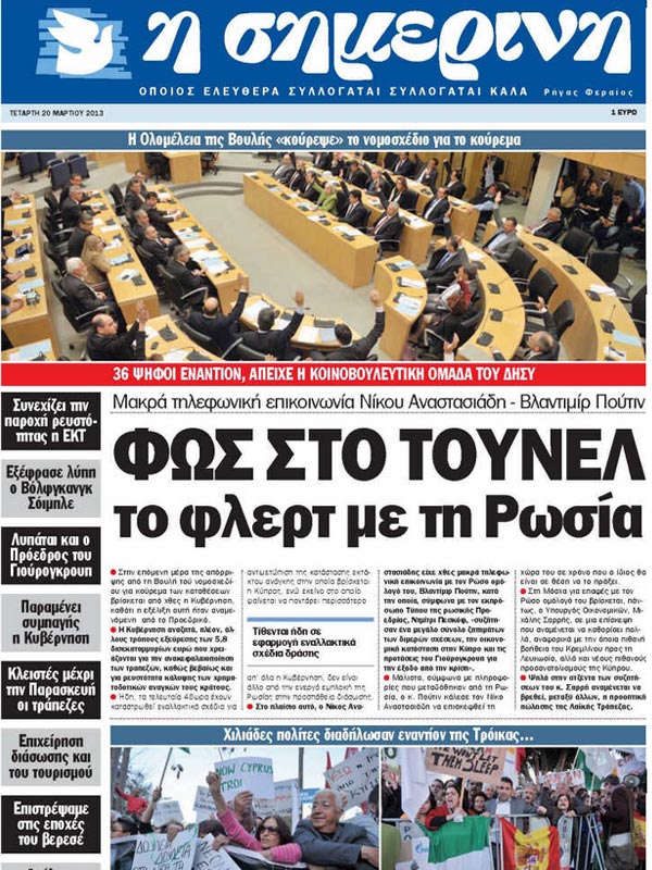 «ΣΗΜΕΡΙΝΗ»: «Φως στο τούνελ το φλερτ με τη Ρωσία. Η ολομέλεια της Βουλής “κούρεψε” το νομοσχέδιο για το κούρεμα».