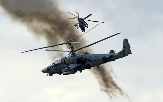 8. Tα Ka-52 Alligator (Κροκόδειλοι) είναι τα επόμενης γενιάς ρωσικά ελικόπτερα, σχεδιασμένα για την καταστροφή τεθωρακισμένων αρμάτων, άλλων θωρακισμένων επίγειων και εχθρικού πεζικού.