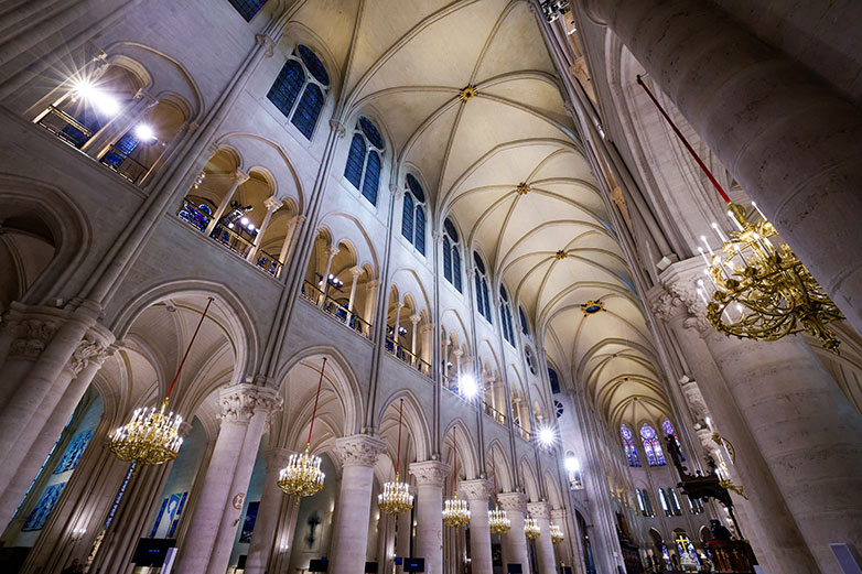 Χιλιάδες ειδικοί τεχνίτες, από ξυλουργούς και λιθοξόους μέχρι καλλιτέχνες των βιτρώ, εργάζονταν διαρκώς τα πέντε τελευταία χρόνια, χρησιμοποιώντας παλαιές μεθόδους για να αποκαταστήσουν, να επισκευάσουν ή να αντικαταστήσουν ό,τι είχε καταστραφεί ή υποστεί ζημιές.