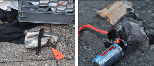 Στο βίντεο αυτό απεικονίζεται άνδρας ο οποίος φέρει σακίδιο και κουκούλα και που φαίνεται να τοποθετεί κάτι στο σημείο όπου εξερράγη ο δεύτερος εκρηκτικός μηχανισμός.