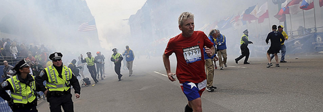 Το αμερικανικό δίκτυο CNN μεταδίδει πως ο δράστης εντοπίστηκε μέσω βίντεο από κάμερα ασφαλείας που ήταν τοποθετημένη σε κατάστημα κοντά στον τόπο του μακελειού. O φερόμενος ως δράστης φαίνεται, αναφέρει το CNN, να τρέχει πανικόβλητος μετά την πρώτη έκρηξη.