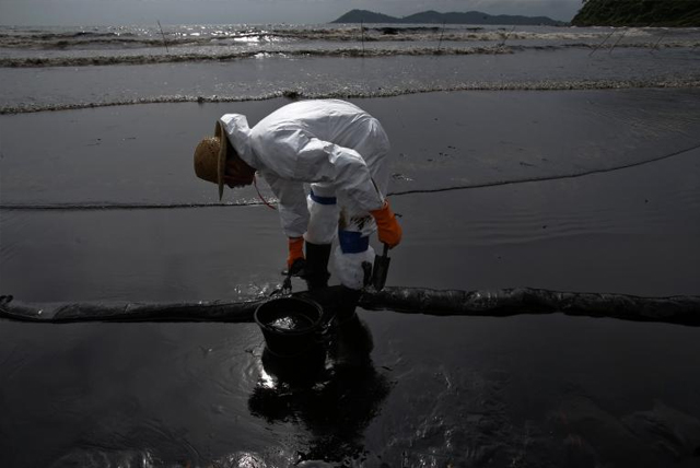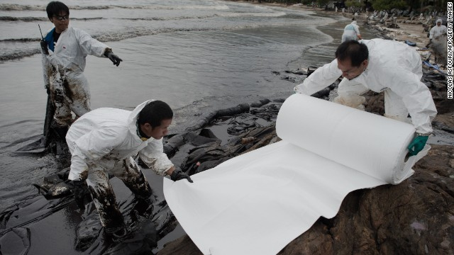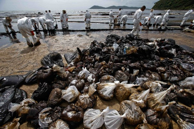 Αγώνα δρόμου συνεχίζουν να δίνουν τα μέλη συνεργείων καθαρισμού στην Ταϊλάνδη, προκειμένου να περιορίσουν τις επιπτώσεις από διαρροή πετρελαίου σ’ έναν από τους δημοφιλέστερους τουριστικούς προορισμούς της ασιατικής χώρας.