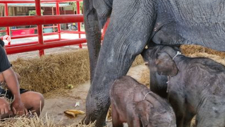 Μία ελεφαντίνα έφερε στον κόσμο δίδυμα στην Ταϊλάνδη, κάτι σπάνιο για το απειλούμενο αυτό είδος θηλαστικών, ύστερα από μια περιπετειώδη γέννα κατά την οποία τραυματίστηκε ένας φροντιστής. Όταν 18 λεπτά μετά τη γέννηση ενός αρσενικού βάρους 80 κιλών ήρθε στον κόσμο ένα θηλυκό ελεφαντάκι 60 κιλών, την Παρασκευή το βράδυ, η μητέρα, η Τζαμτζούρι, έπαθε νευρικό κλονισμό. Μέλος της ομάδας του κέντρου στο οποίο ζει η ελεφαντίνα επενέβη τότε για να την εμποδίσει να επιτεθεί στο δεύτερο ελεφαντάκι που ήρθε στον κόσμο, αλλά δέχθηκε ως αντίδραση χτύπημα στον αστράγαλο.