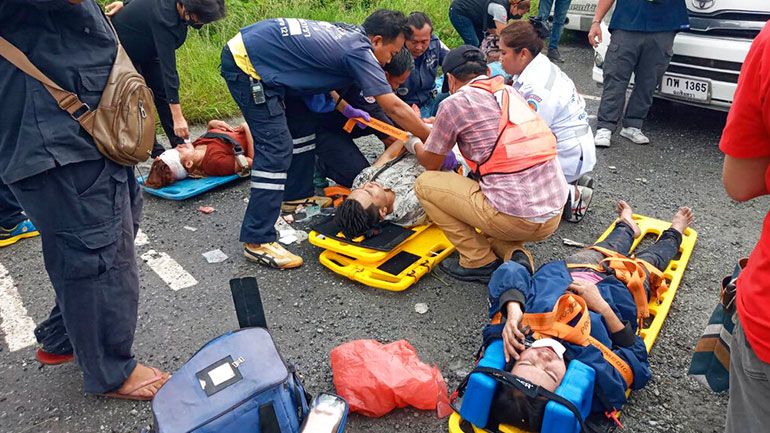 Τουλάχιστον 17 άτομα έχασαν τη ζώη τους λεωφορείο που μετέφερε 65 επιβάτες με προορισμό βουδιστικό ναό, συγκρούστηκε με τρένο, περίπου 50 μίλια έξω από τη Μπανγκόκ. Η σύγκρουση σημειώθηκε στις 08:00 το πρωί της Κυριακής (τοπική ώρα), πιθανότατα λόγω της βροχόπτωσης και των άσχημων καιρικών συνθηκών που επικρατούσαν στην περιοχή.