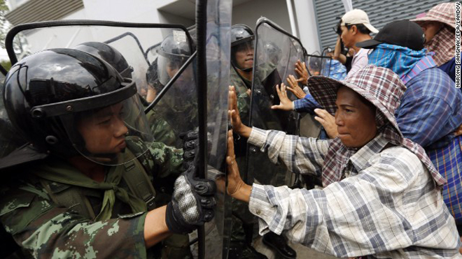 Ο στρατός που κατέστειλε το κίνημα διαμαρτυρίας το 2010, έκανε ή αποπειράθηκε να κάνει πολλά πραξικοπήματα από τότε που η Ταϊλάνδη έγινε συνταγματική μοναρχία το 1932. Ο στρατός ανέτρεψε τον αδελφό της πρωθυπουργού, τον Τακσίν Σιναουάτρα, το 2006. Έκτοτε η χώρα έχει βυθιστεί σε έναν κύκλο πολιτικών κρίσεων που κάνει όλο και περισσότερους υποστηρικτές και επικριτές του Τακσίν να κατεβαίνουν στους δρόμους.