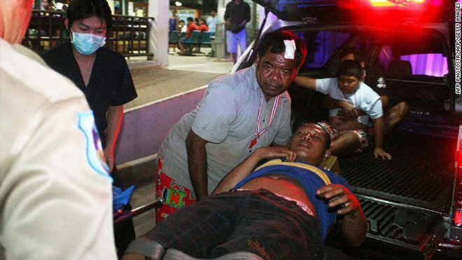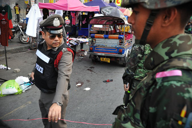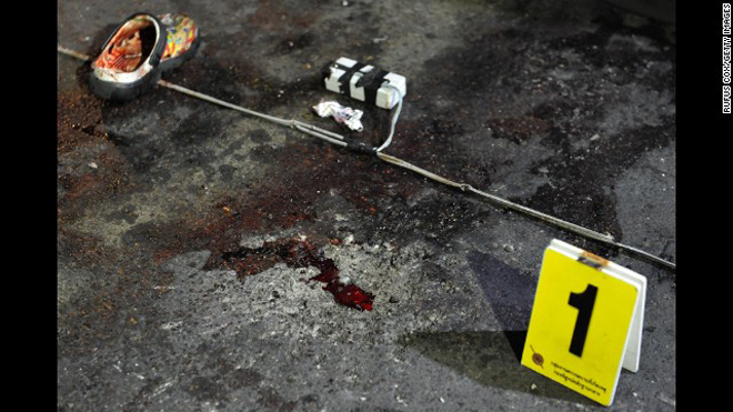Η πρωθυπουργός Γινγκλάκ Σιναουάτρα χαρακτήρισε χθες την έκρηξη στην οποία τα δύο παιδιά σκοτώθηκαν «τρομοκρατική» ενέργεια. Η επίθεση σημειώθηκε μέρα μεσημέρι σε μια τουριστική συνοικία της Μπανγκόκ όπου υπάρχουν εμπορικά κέντρα και πολυτελή ξενοδοχεία και όπου οι διαδηλωτές έχουν κατασκηνώσει εδώ και εβδομάδες.