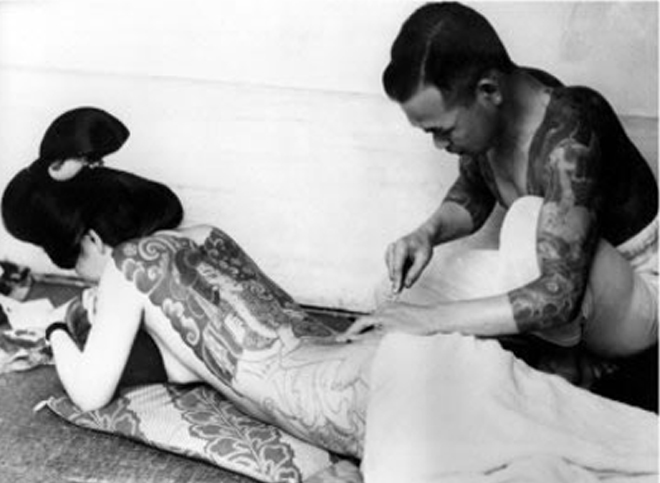 Χαρακτηριστικό παράδειγμα, η Αυστραλή Cindy Ray που χάριν στα περίτεχνα tattoos της είχε γίνει super star to 1962, ενώ φωτογραφίες του 1937, απεικονίζουν γκέισα με ζωγραφισμένο όλο το κορμί της.