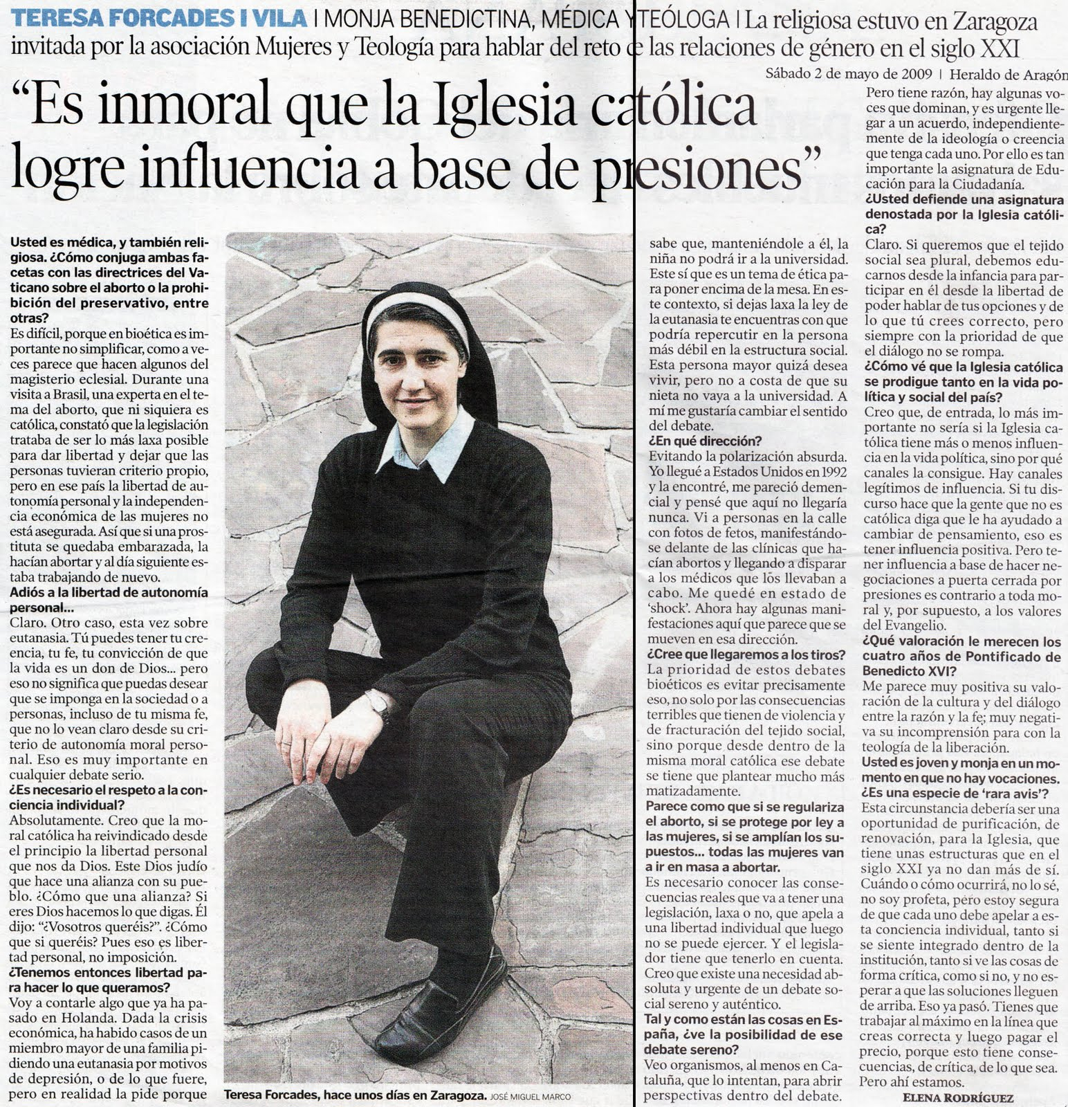 Από μια μοναχή του τάγματος των Βενεδικτίνων, θα περίμενε κανείς σίγουρα μια πιο συντηρητική στάση. Όμως, η Τερέζα Φορκάδες με την δριμεία της κριτική σε ό,τι θεωρεί «προβληματικό» – από τις τράπεζες ως τις μεγάλες φαρμακευτικές εταιρείες – εξελίσσεται σε έναν από τους πιο μαχητικούς και φυσικά άτυπους εκπροσώπους της νοτιοευρωπαϊκής Αριστεράς.